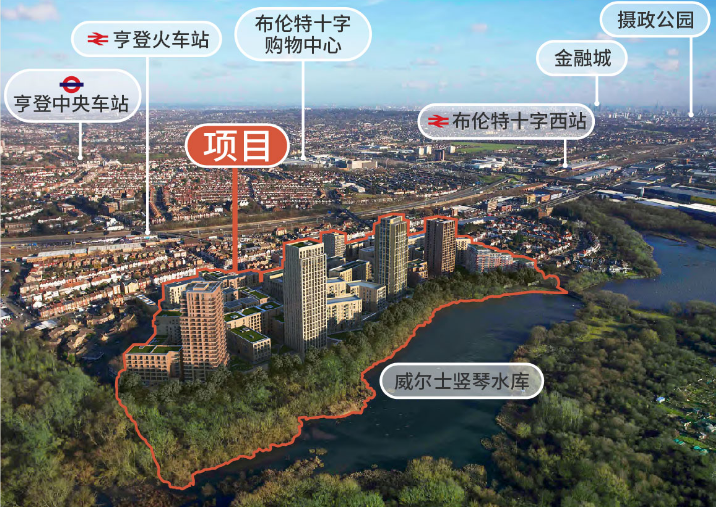 项目位于伦敦西北三区,隶属于伦敦的著名学区——巴尼特Barnet。同时,项目紧邻Welsh Harp(Brent Reservoir)水库,后者是伦敦最大的水库之一,也是两百多年以来一直为伦敦著名的摄政运河供给水源的地方。因此,无论是水质还是周边绿化,都保持着极高的标准。