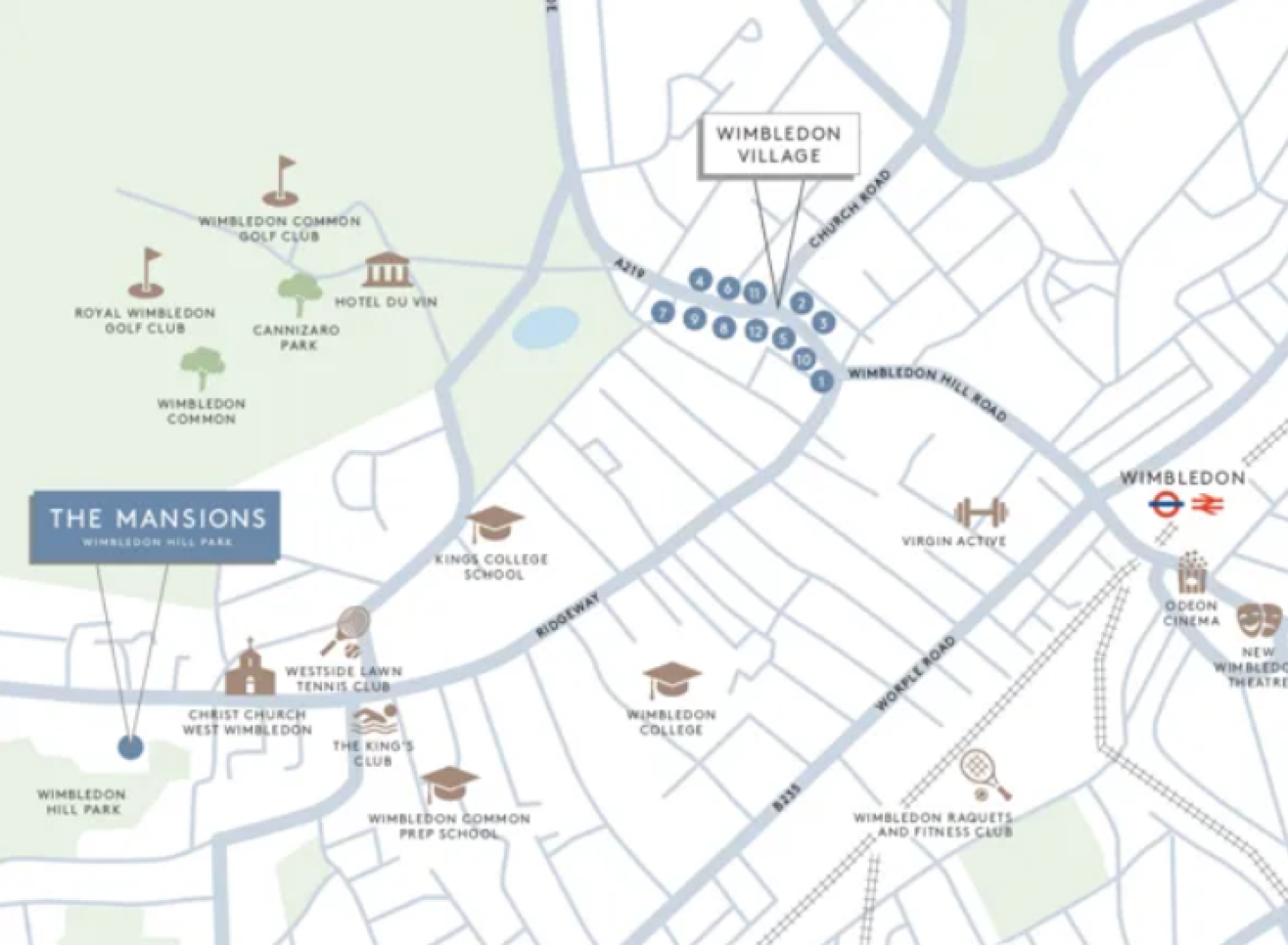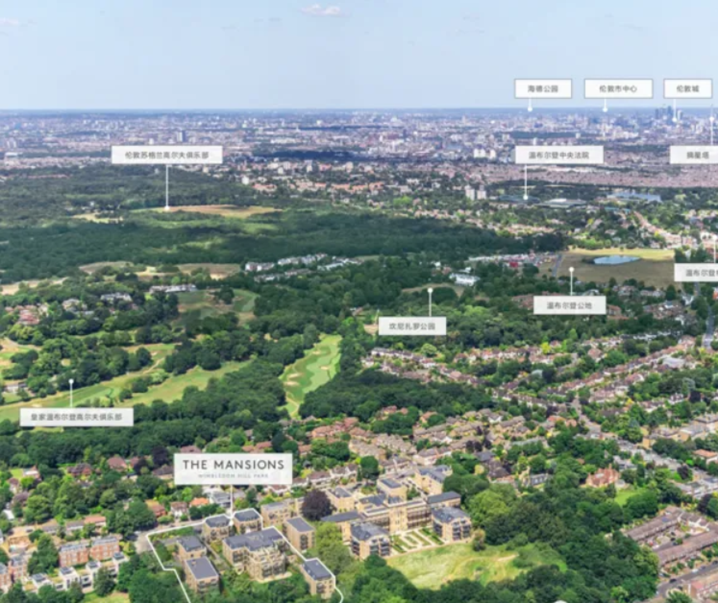 温布尔登花园周边绿地环绕:Wimbledon Common温布尔登公地、Richmond Park里士满公园、Bushy Park灌木公园、Cannizoro Park坎尼扎罗公园等等都在项目周边。