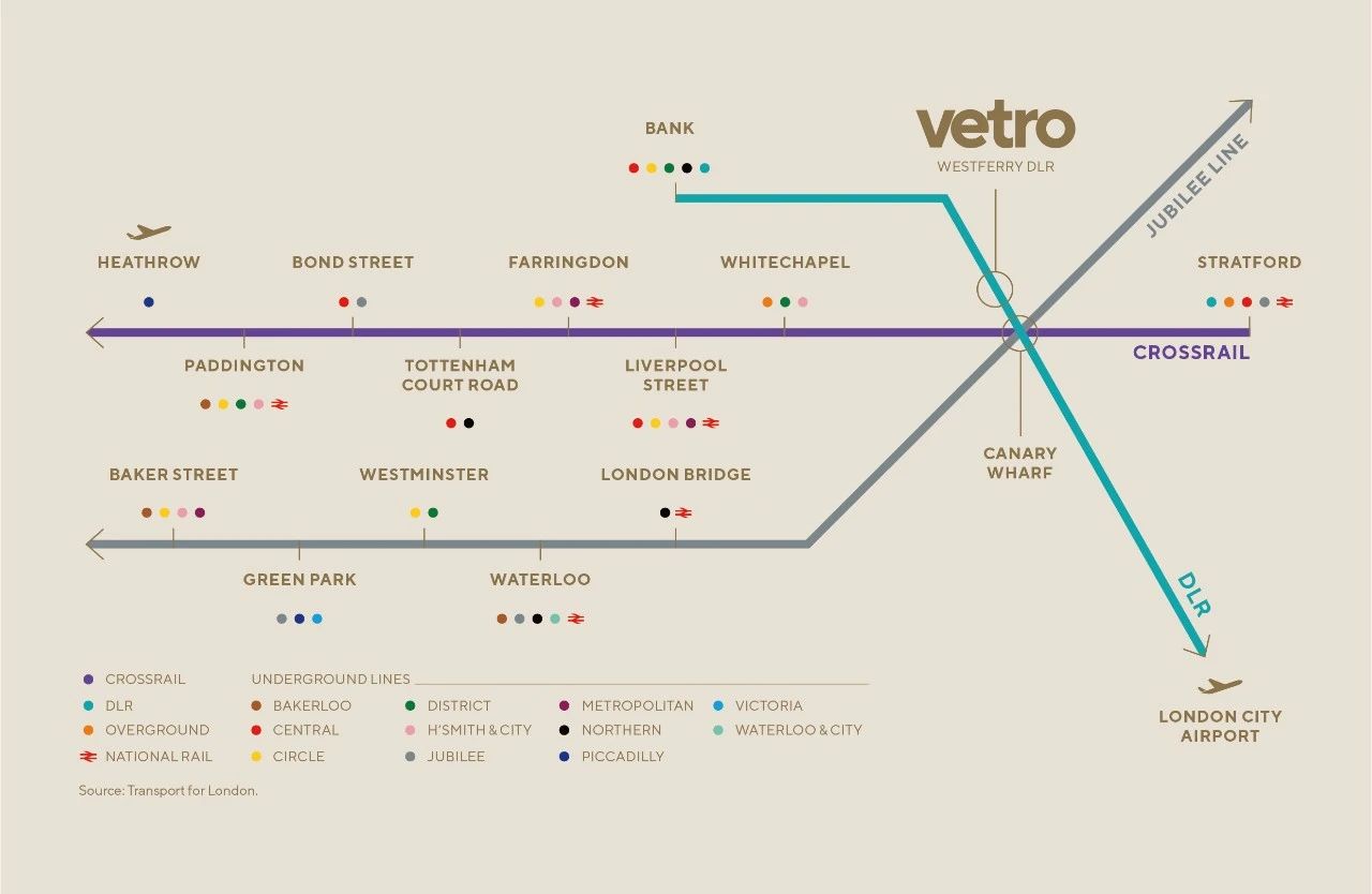 例如:Westferry轻轨站近在家门口,可乘坐DLR,快速前往金丝雀码头、金融城、伦敦城市机场。以及Canary Wharf地铁站,从项目步行可达,可乘坐Jubilee Line, Elizabeth Line, DLR轻轨,便捷前往邦德街、滑铁卢、帕丁顿等。River Bus到泰晤士河快船码头也在很短的步行路程内,并通过泰晤士河连接到河岸、伦敦塔、威斯敏斯特和巴特西发电站等。