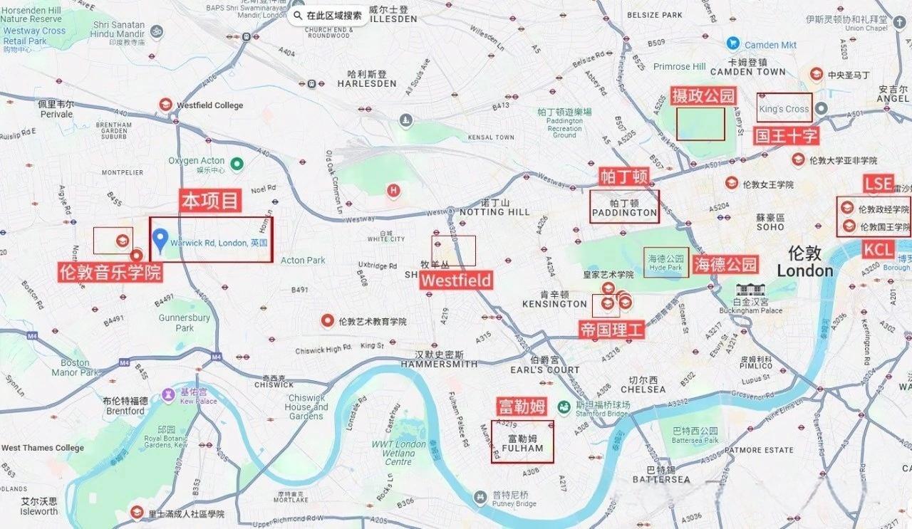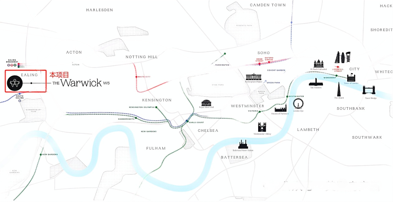 Warwick W5 地理位置优越,享有「郊区女王Queen of the Suburbs」雅称,西伦敦宜居地的代表。西伦敦黄金地段,与肯辛顿Kensington、富勒姆Fulham等老牌富人区为邻。